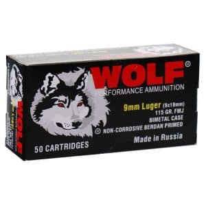 Wolf Performance Steel Case Handgun Ammunition 9mm Luger 115gr FMJ 1130 fps 50/ct