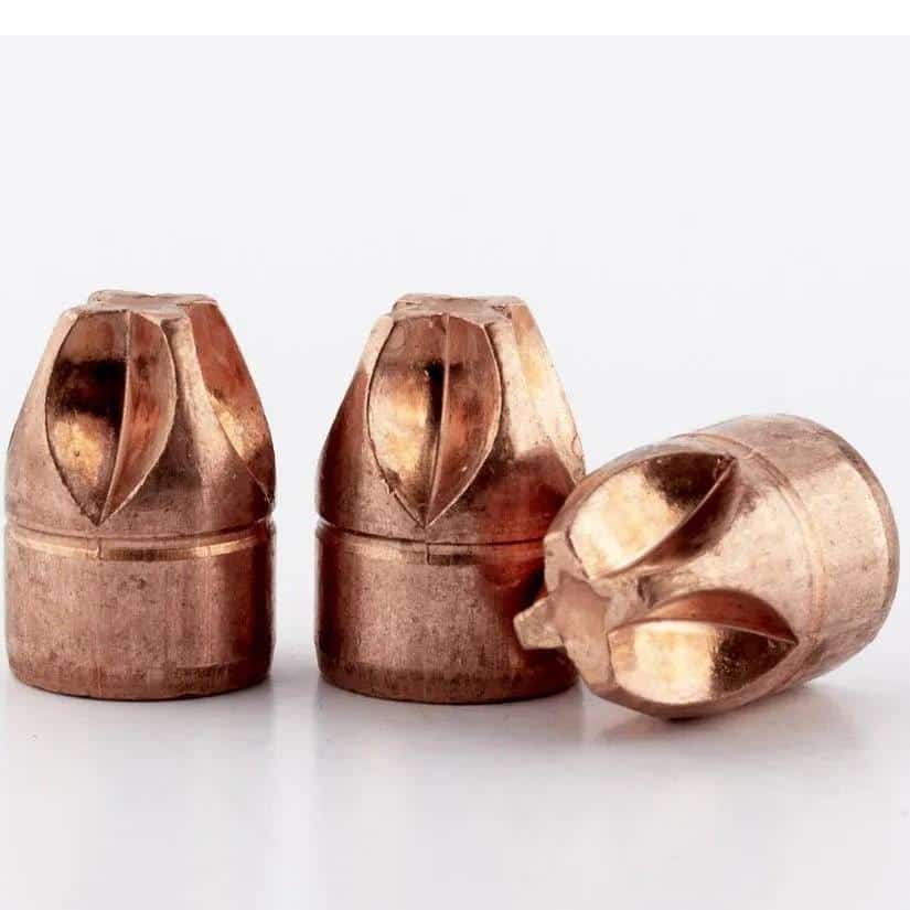 The advanced technology Xtreme Defense Fluid Transfer Monolithic (XD FTM) is changing the way self-defense bullets are perceived. Like the Xtreme Penetrator the progressive nose geometry allows for deep straight penetration while creating a permanent wound cavity diameter exceeding that of most expanding bullets. Additionally the bullet is solid copper able to overcome barriers to penetration is environmentally friendly and does massive tissue damage on impact. Penetrating barriers such as drywall or heavy clothing prior to impacting the intended target doesn’t have the potentially negative effect on the Xtreme Defense that it does to conventional hollow point bullets.