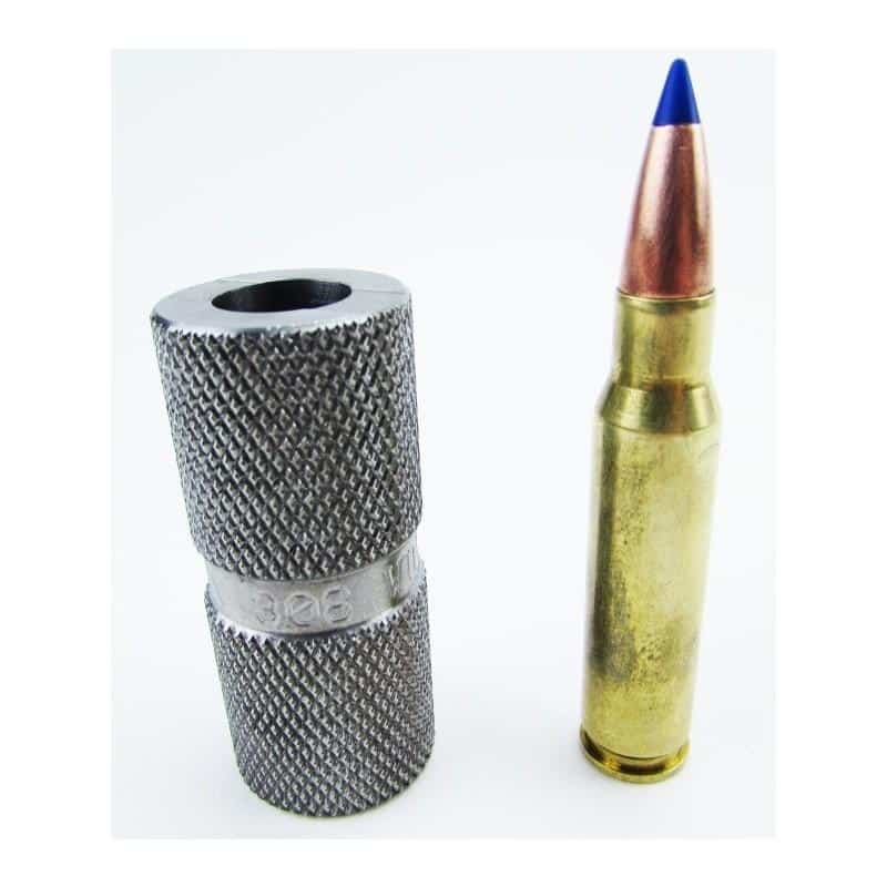 To achieve the highest degree of safety and accuracy Lyman recommends that all bottleneck rifle cases be inspected after resizing to ensure that the proper headspace dimension is maintained. The best way to check this critical dimension is with a Lyman case length/headspace gauge. The reloader simply inserts the case into the gauge to insure that it does not exceed the maximum or fall below the minimum allowable headspace. In addition the gauge will identify a case which exceeds the maximum allowable case length. Caution: Any case found with excessive headspace should be destroyed immediately.