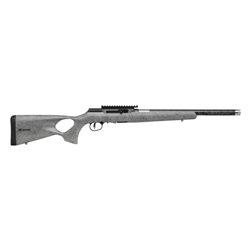 Savage Arms A22 Timberlite Thumbhole Rifle .22 LR 10rd Magazine 18″ 1/2×28 Threaded Barrel Grey with Black Spiderweb