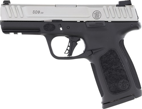 S&W SD9 2.0 9MM 4″ FS 10-SHOT – SILVER SS SLIDE/BLACK POLY